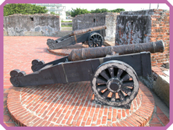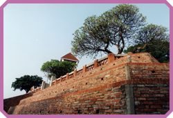 清道二十年(一八四O年) 值中英鴉片戰爭之際,由台灣兵備道姚瑩所創建的四草砲台,經清領,日據,光復後成鎮海國小的圍牆,創建之初,因急迫而因陋就簡,清道光二十一年,才以石為材料,修建為較永久之形式。